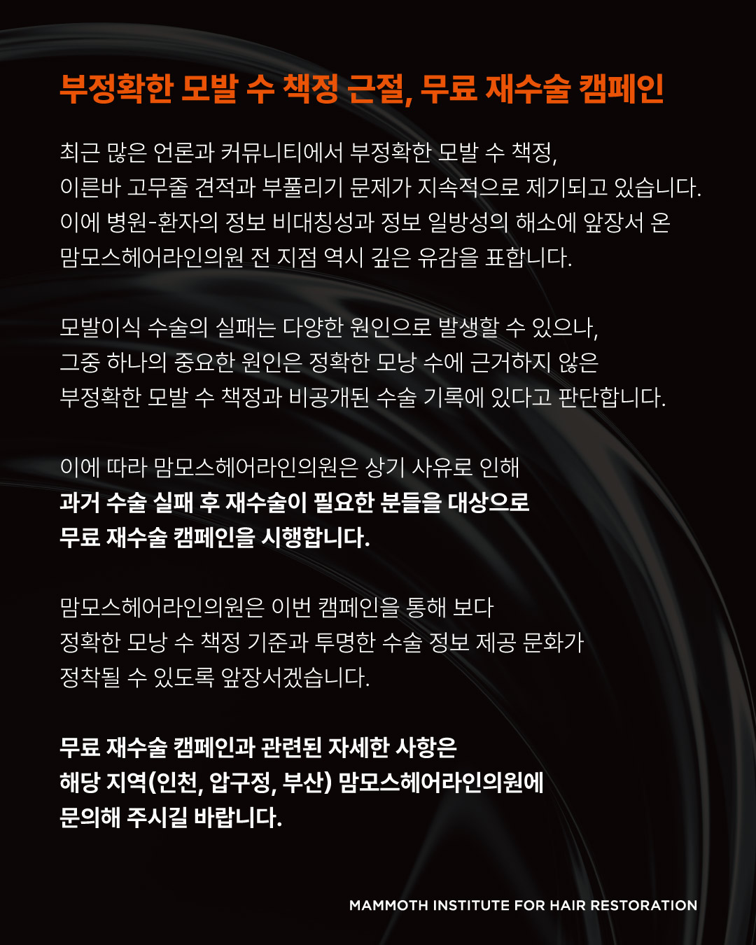 세계 비절개 발전을 선도하는 맘모스 헤어라인의원